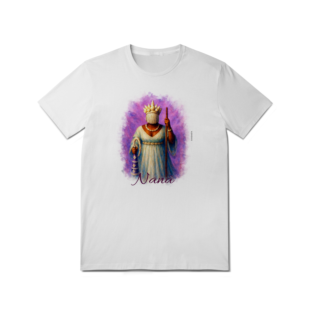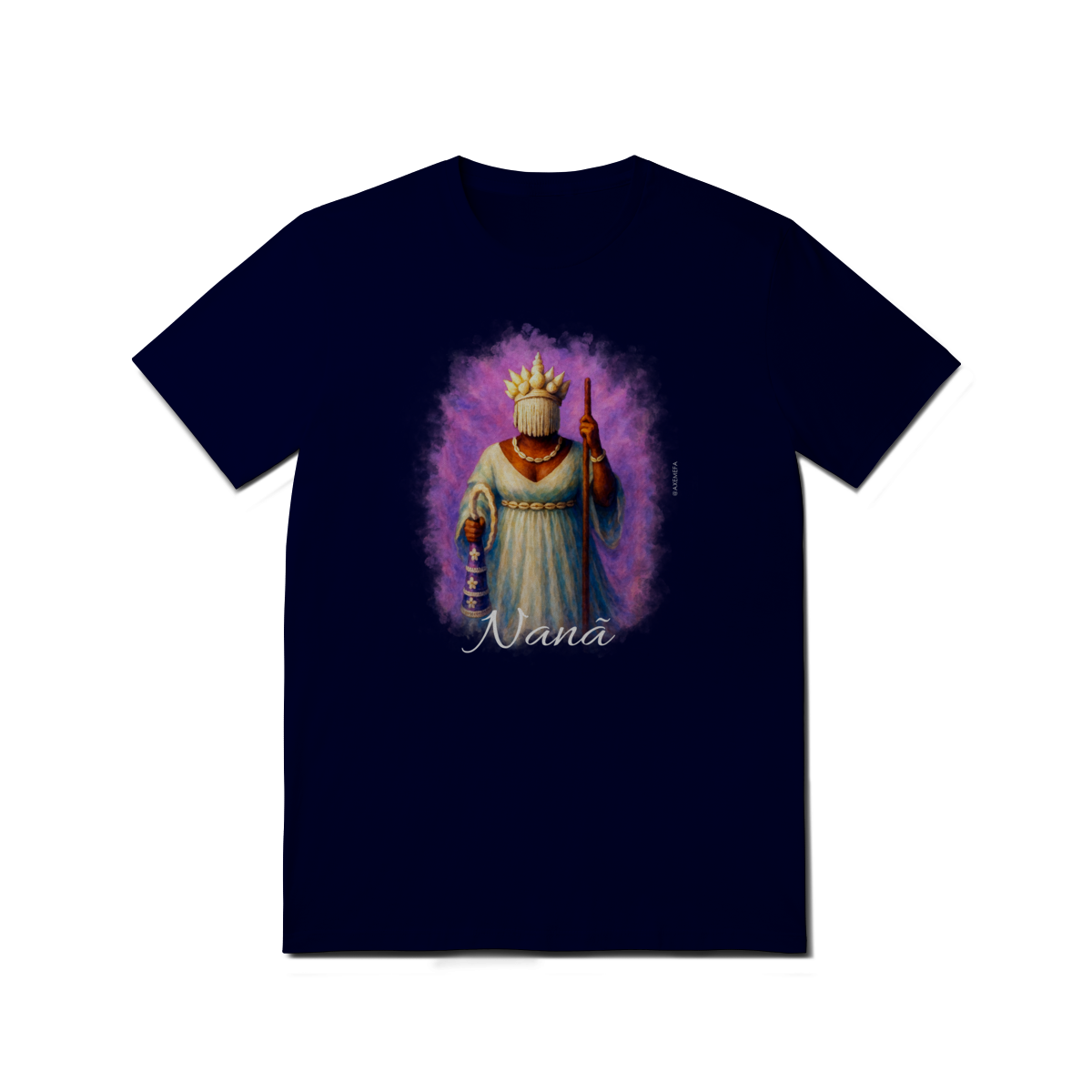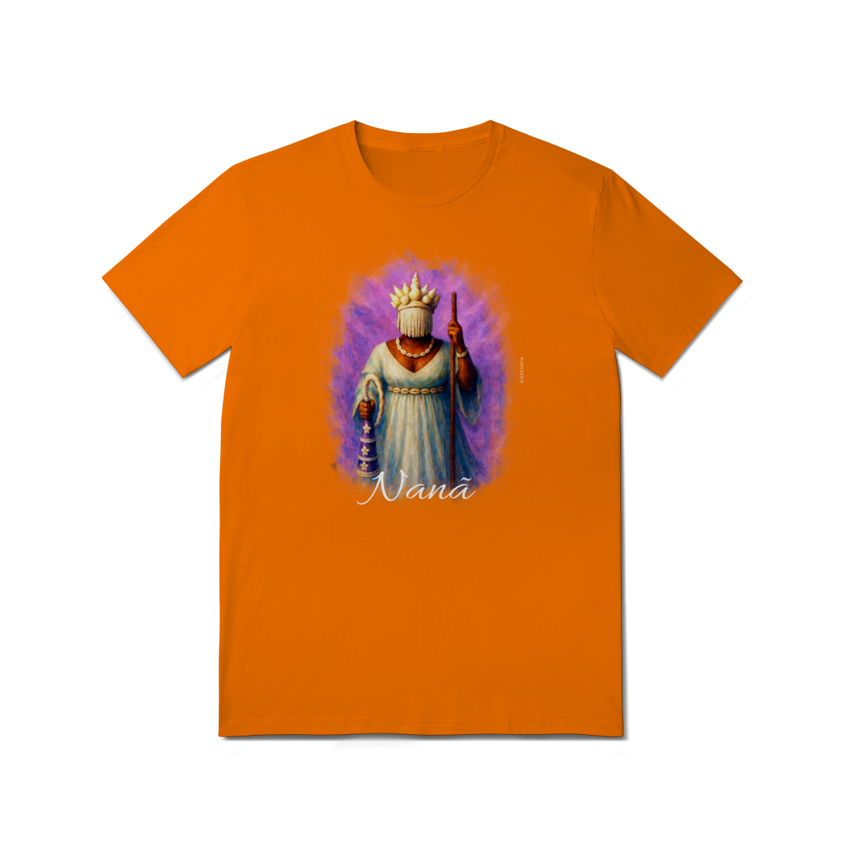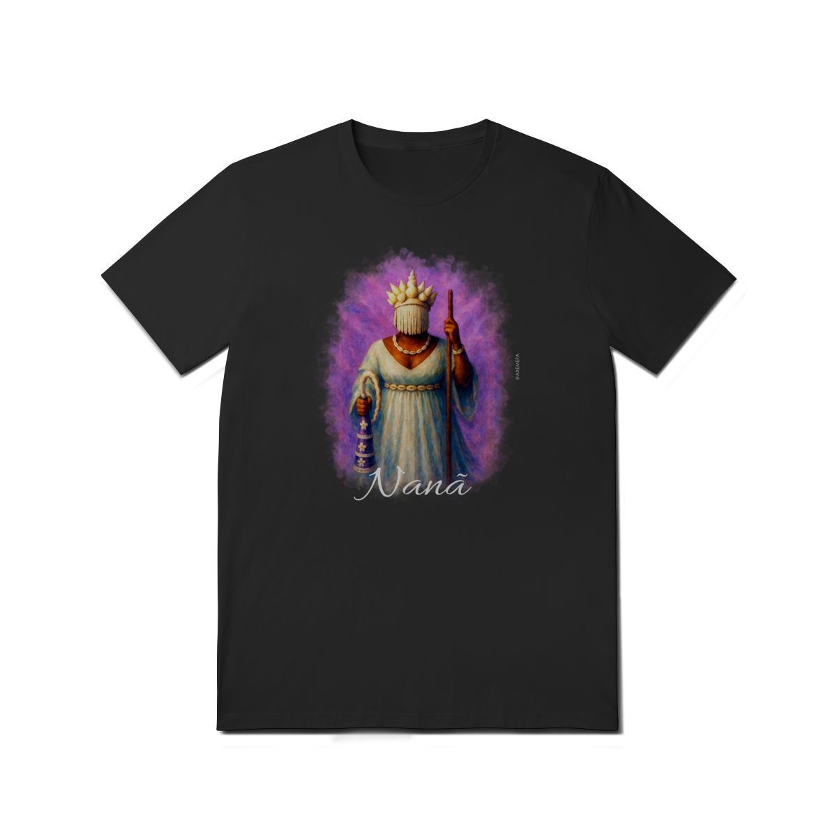A Camiseta de Nanã é a escolha ideal para quem busca estilo, conforto e um toque de personalidade. Com uma estampa vibrante de Nanã, esse modelo se destaca pela qualidade do tecido e pelo design único, trazendo à tona toda a energia e força desse orixá. Perfeita para quem deseja expressar sua conexão com a espiritualidade de maneira fashion e sofisticada.