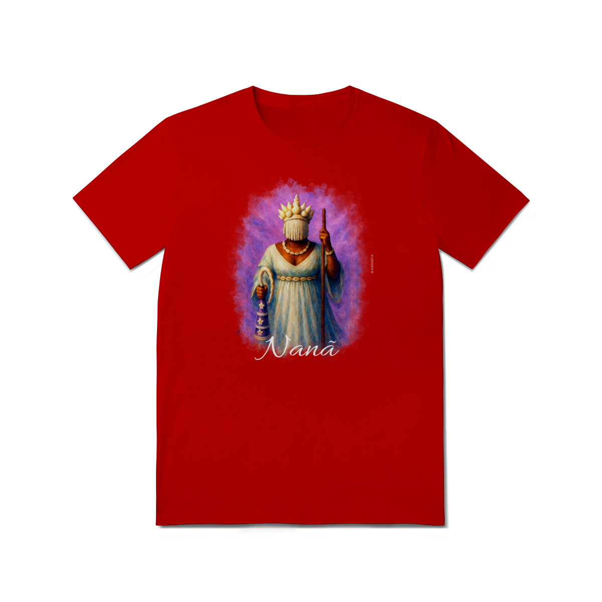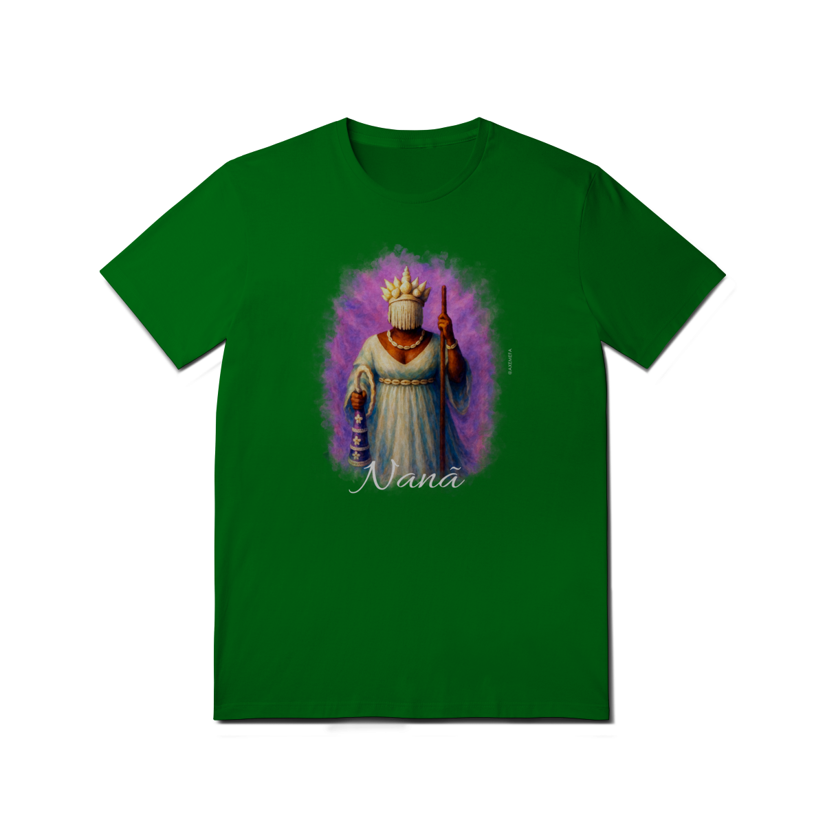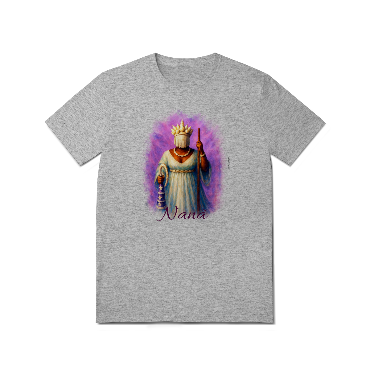 A Camiseta de Nanã é a escolha ideal para quem busca estilo, conforto e um toque de personalidade. Com uma estampa vibrante de Nanã, esse modelo se destaca pela qualidade do tecido e pelo design único, trazendo à tona toda a energia e força desse orixá. Perfeita para quem deseja expressar sua conexão com a espiritualidade de maneira fashion e sofisticada.