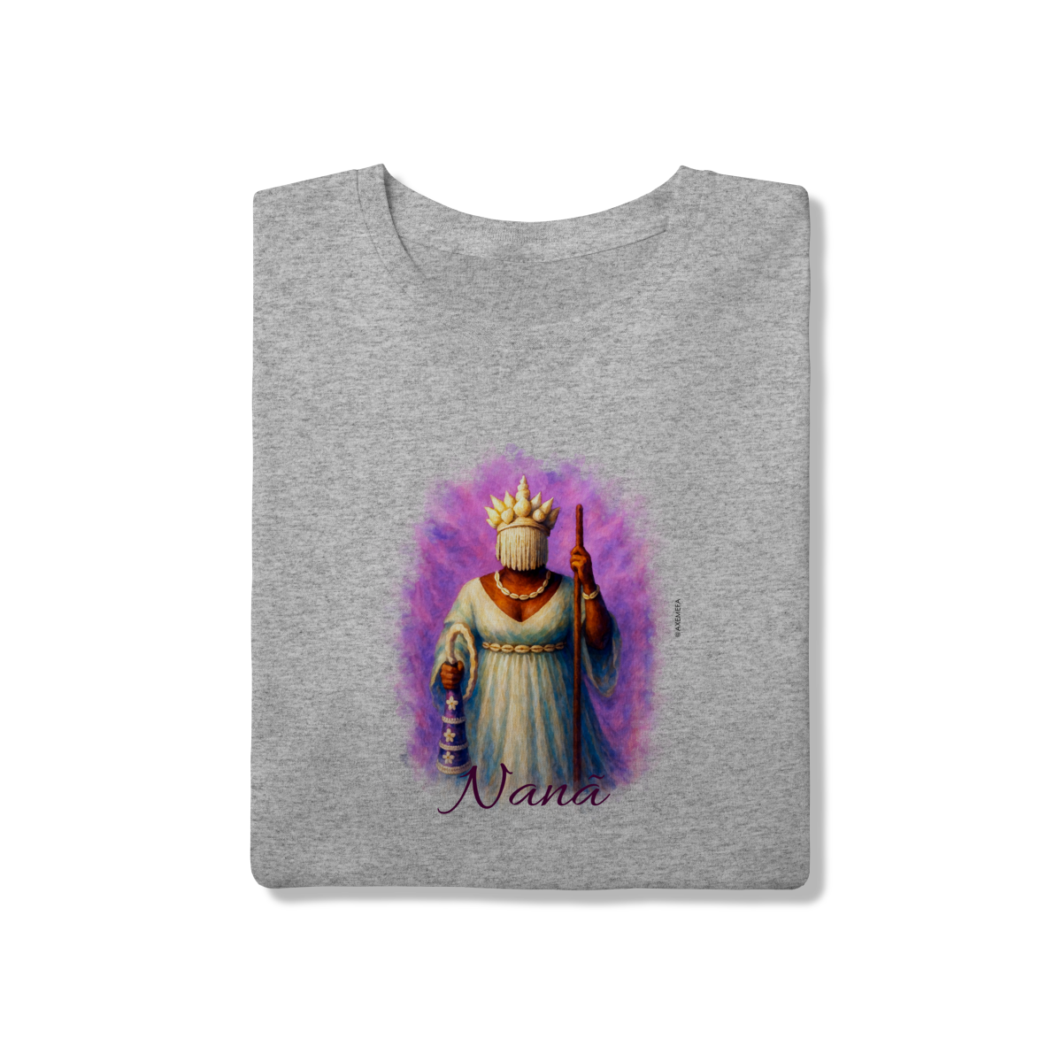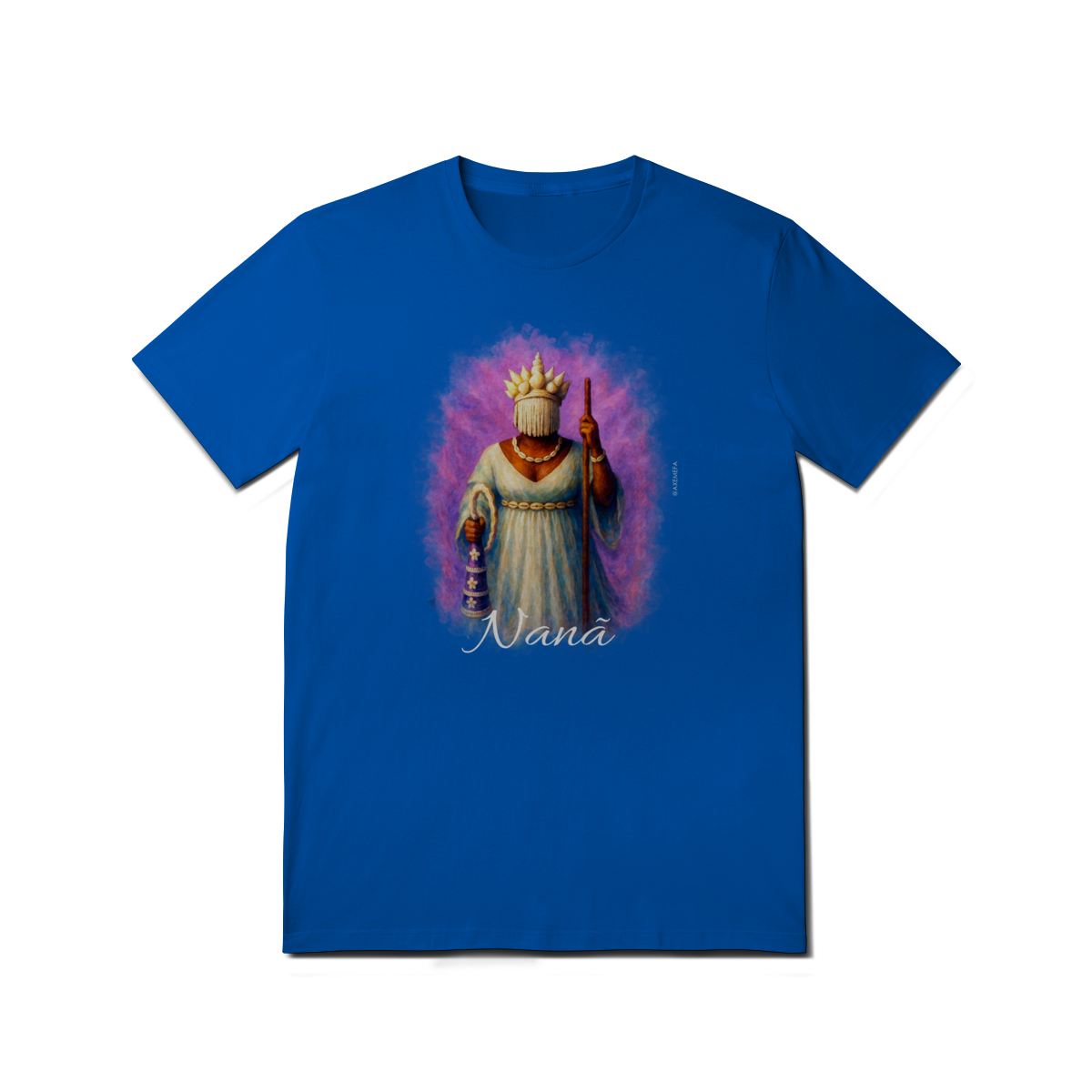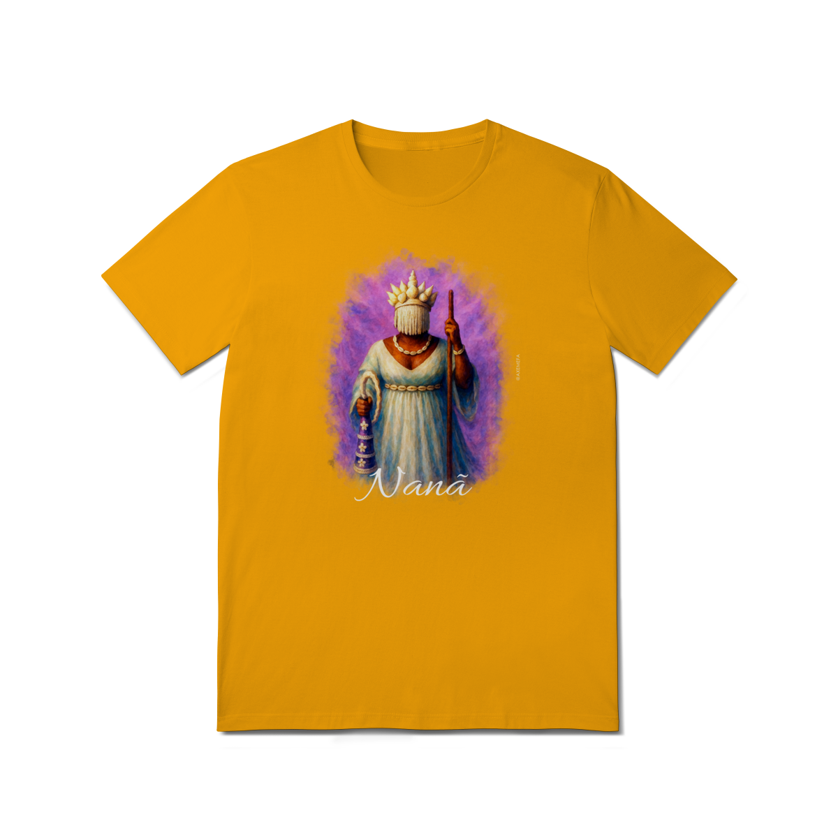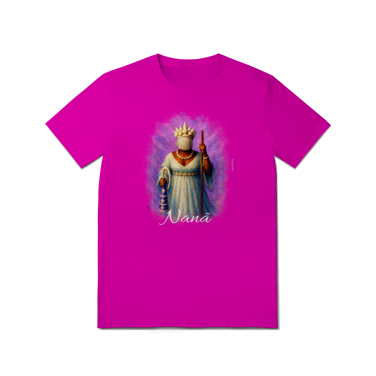 A Camiseta de Nanã é a escolha ideal para quem busca estilo, conforto e um toque de personalidade. Com uma estampa vibrante de Nanã, esse modelo se destaca pela qualidade do tecido e pelo design único, trazendo à tona toda a energia e força desse orixá. Perfeita para quem deseja expressar sua conexão com a espiritualidade de maneira fashion e sofisticada.