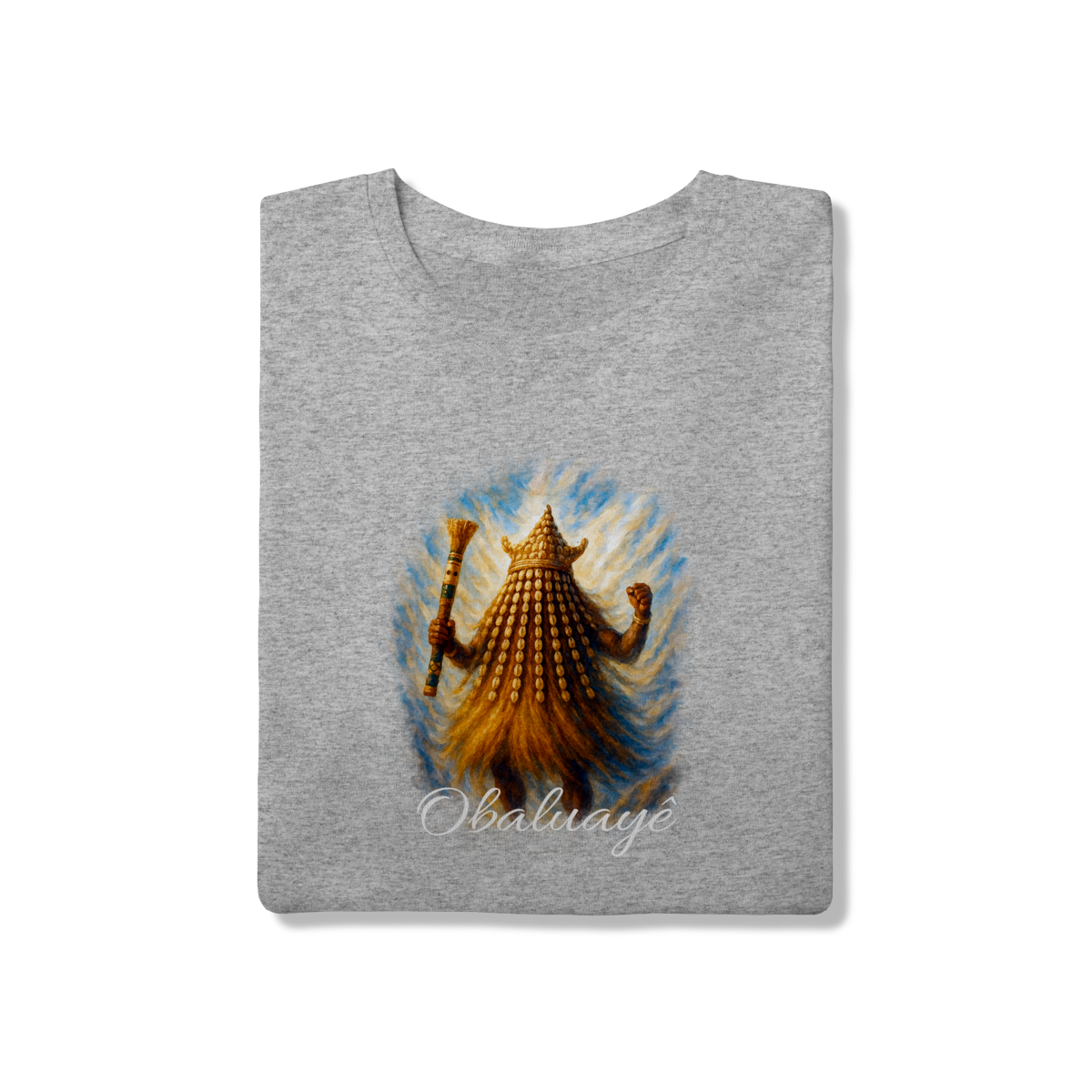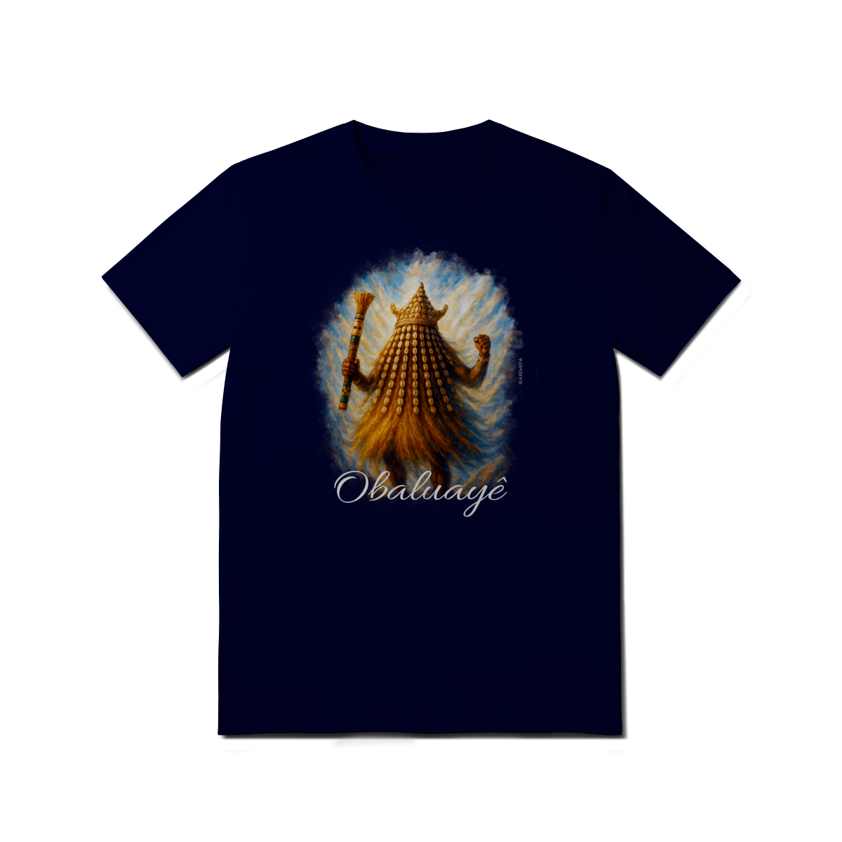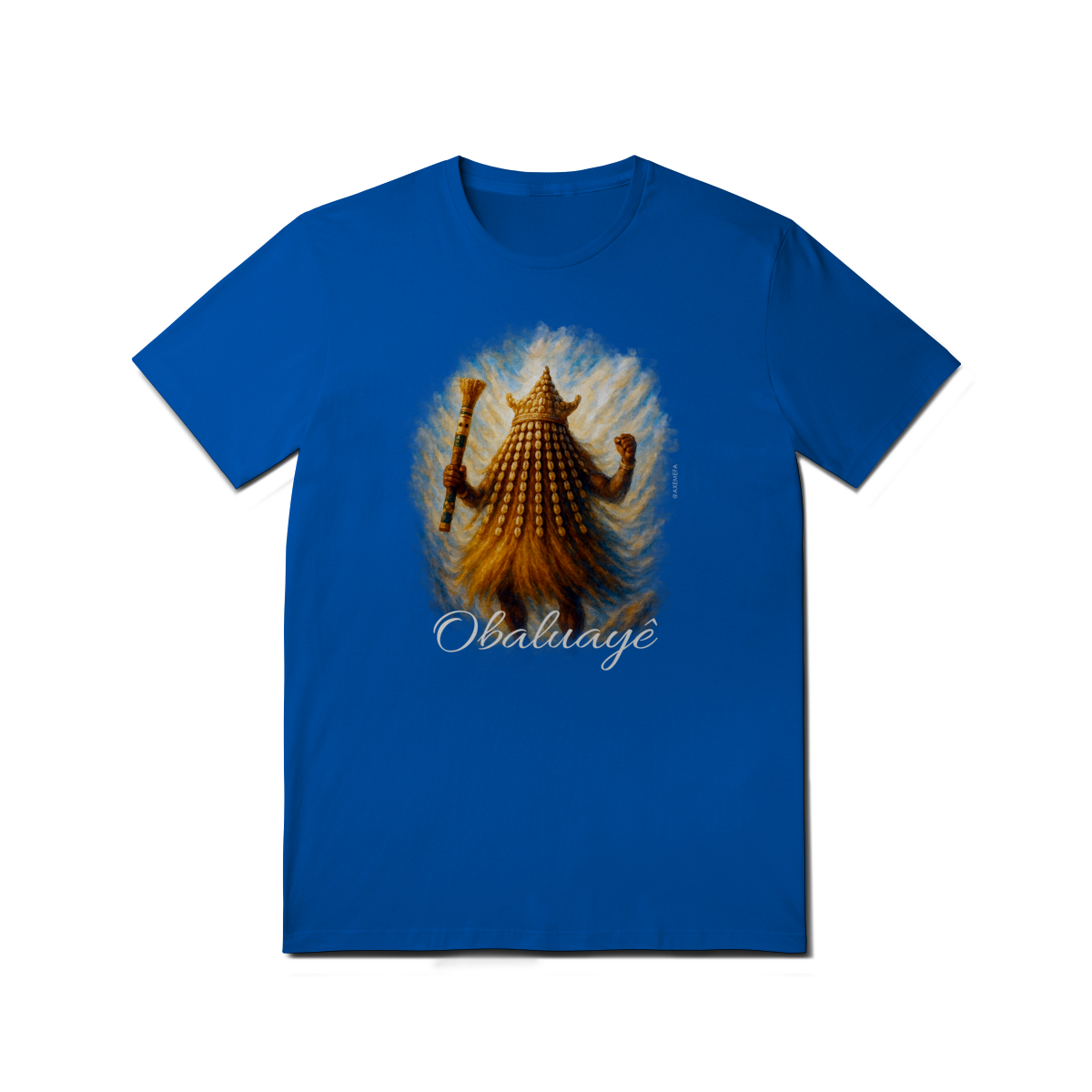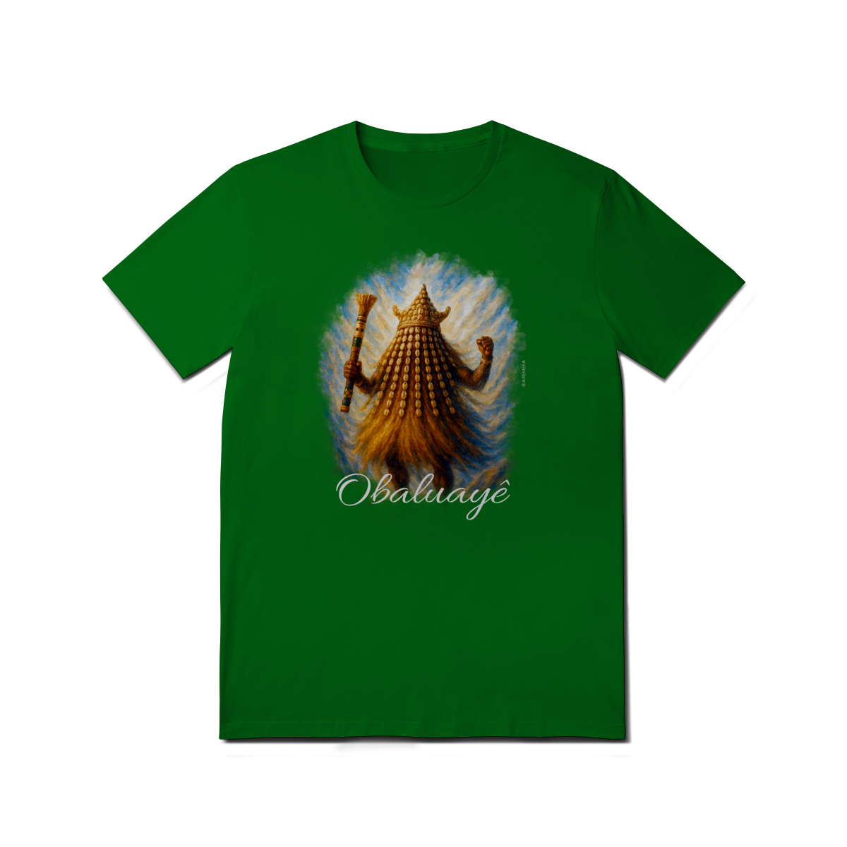 A estampa de Obaluaiye foi cuidadosamente desenvolvida por um Ilustrador profissional, capturando a energia desse orixá. Com cores vibrantes e detalhes precisos, ela garante um visual moderno e impactante.