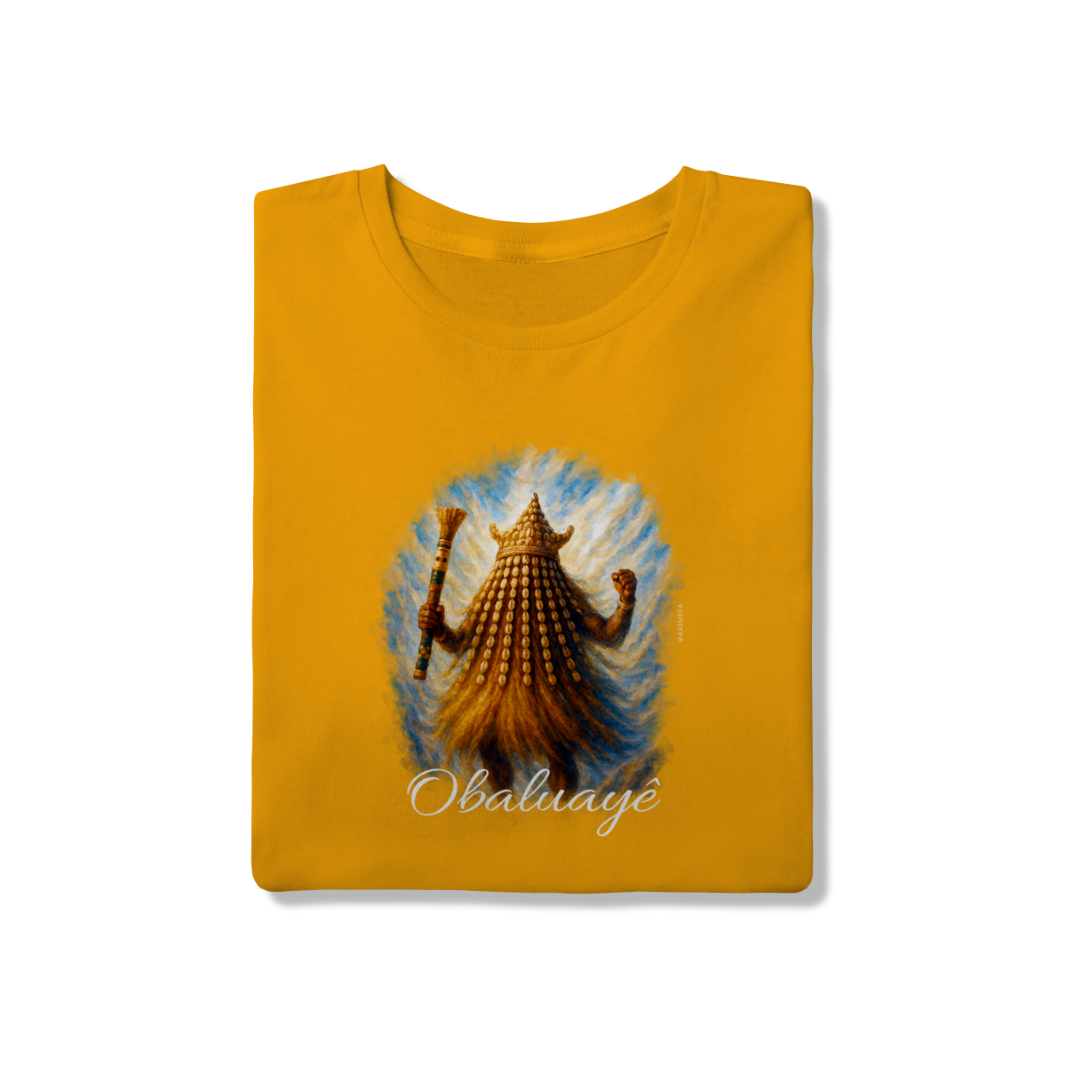 Fabricada com tecido de alta qualidade, a Camiseta de Obaluaiye proporciona uma sensação de leveza e maciez durante o uso. Ideal para o dia a dia ou para ocasiões especiais.