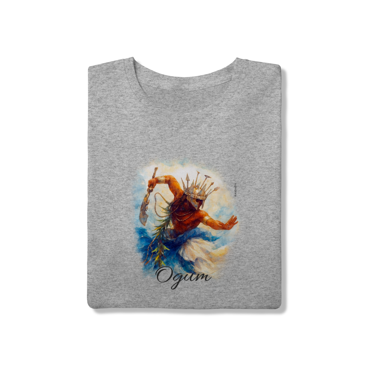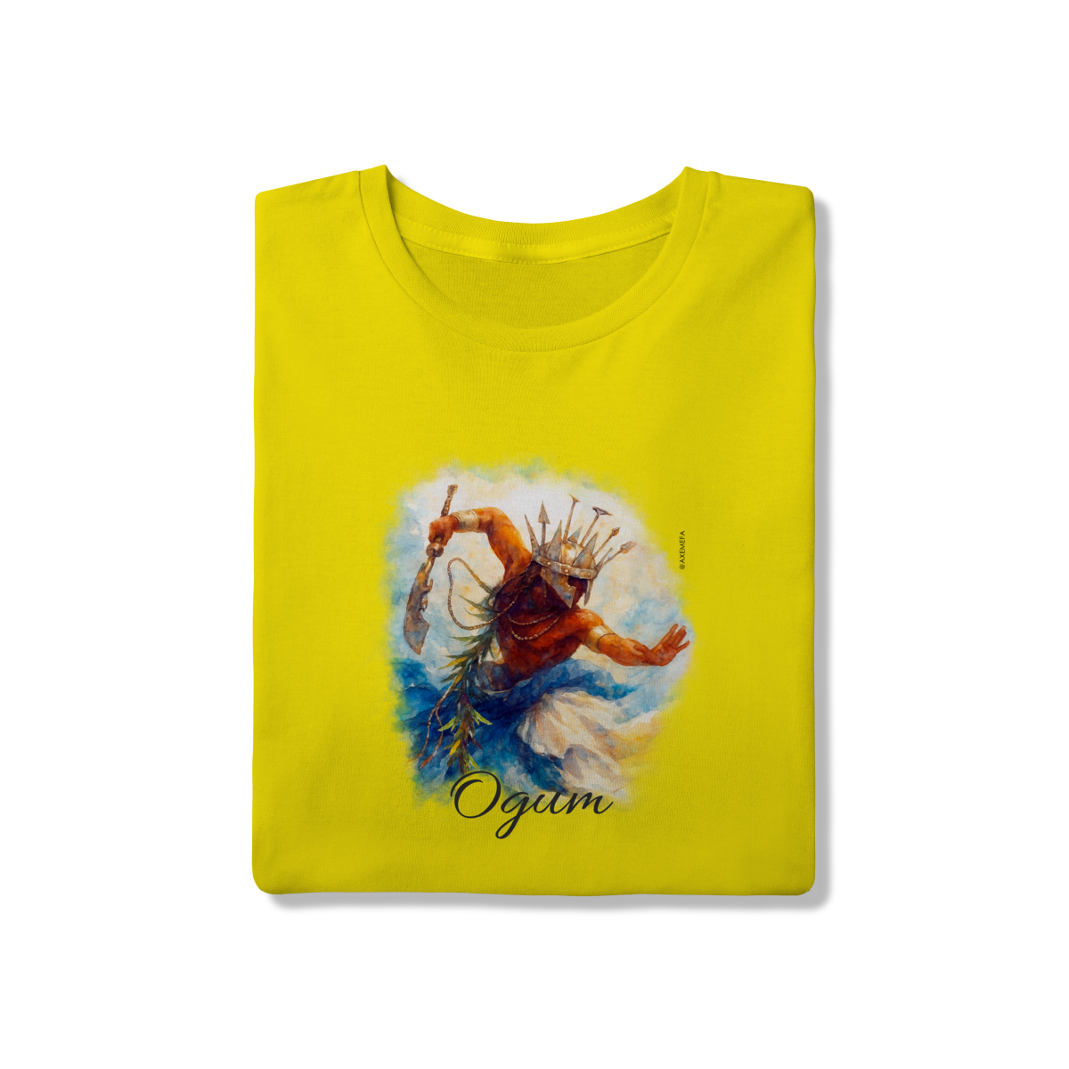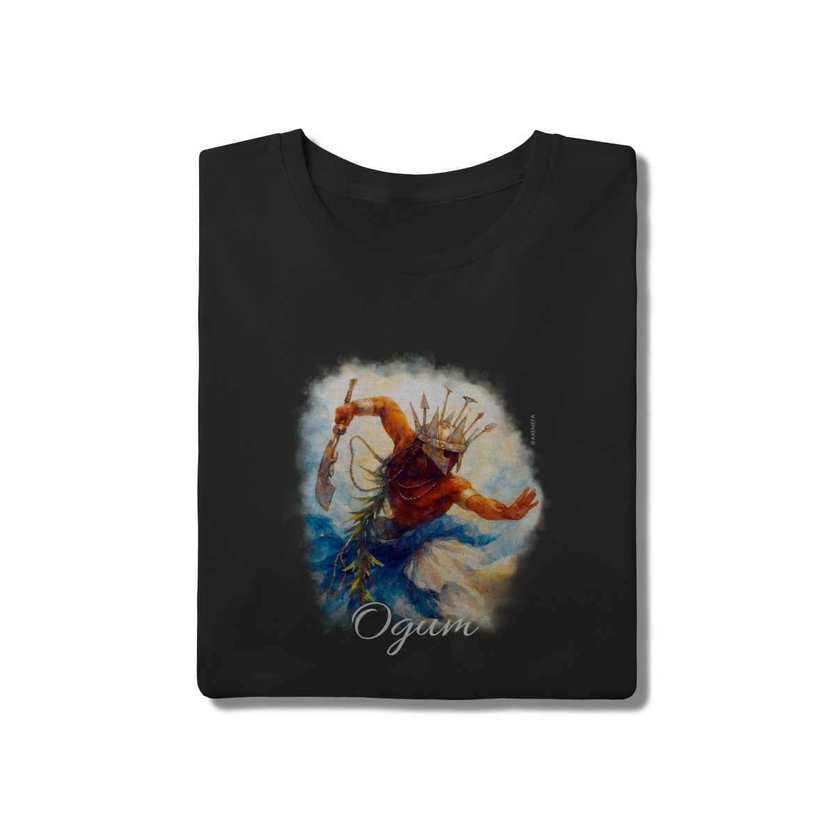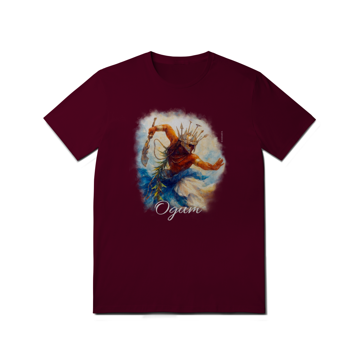 A estampa de Ogum foi cuidadosamente desenvolvida por um Ilustrador profissional, capturando a energia desse orixá. Com cores vibrantes e detalhes precisos, ela garante um visual moderno e impactante.