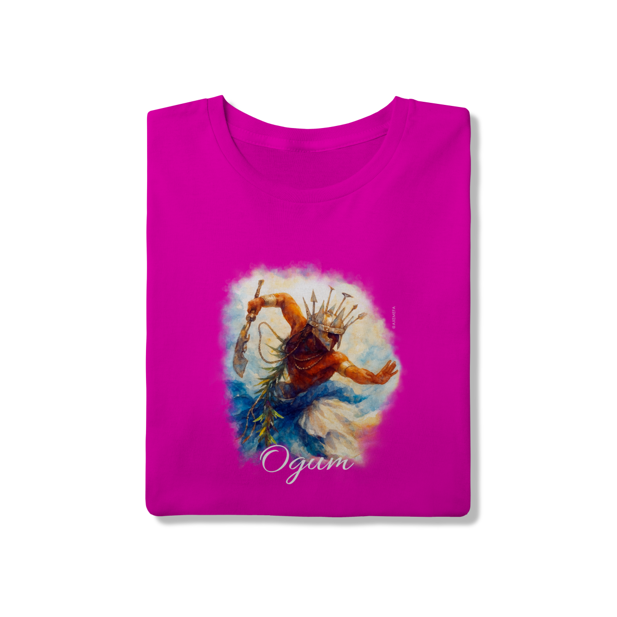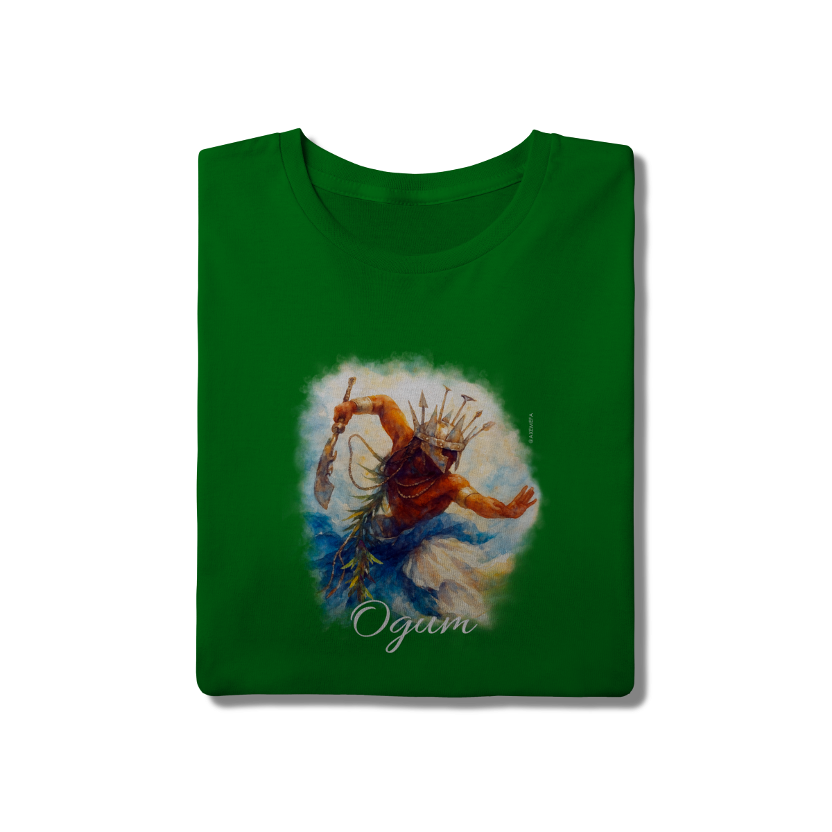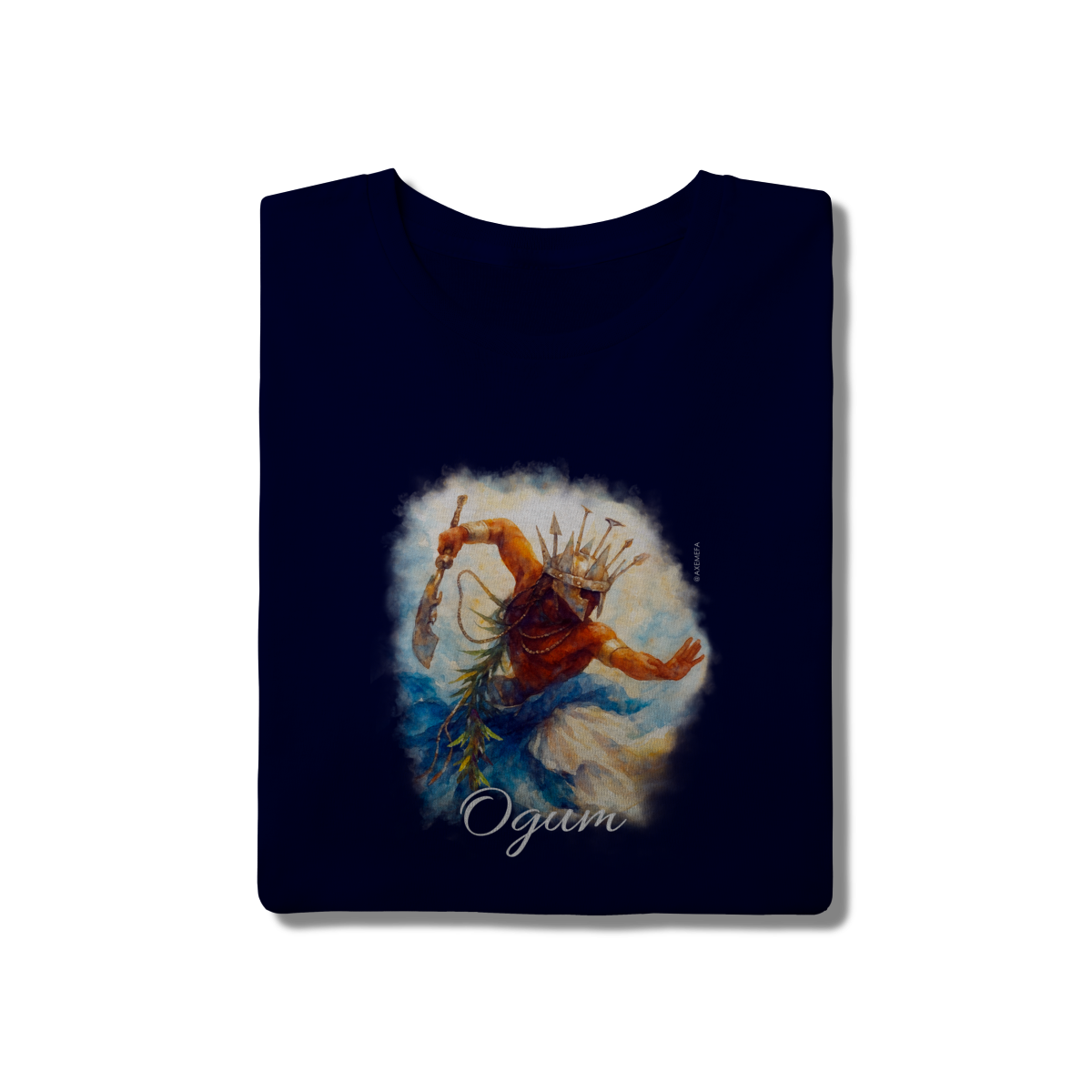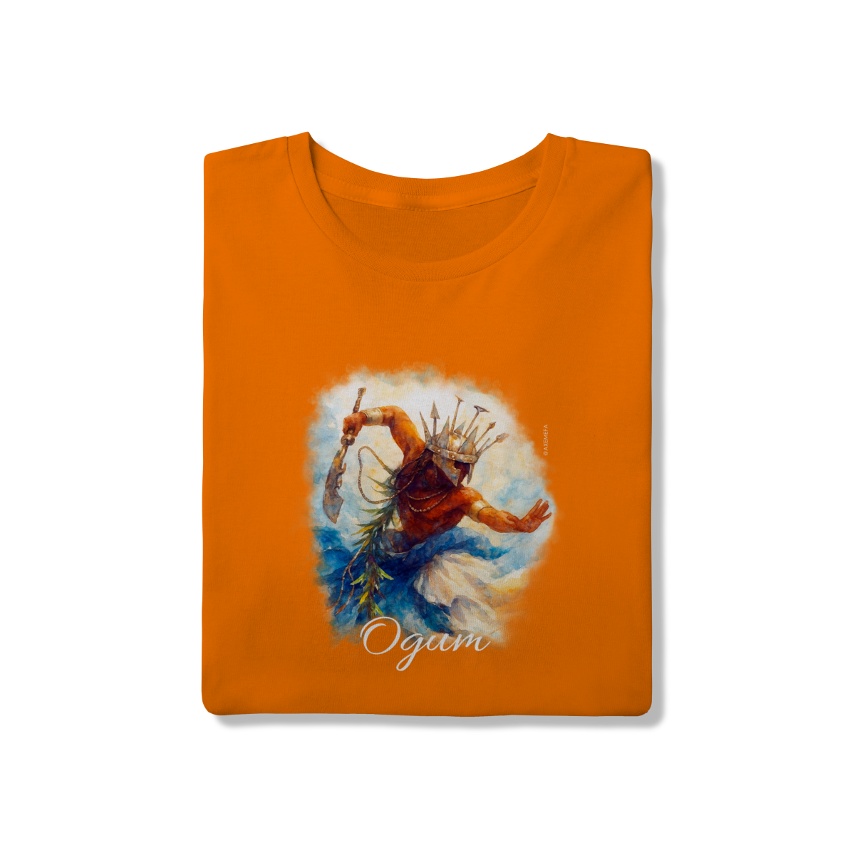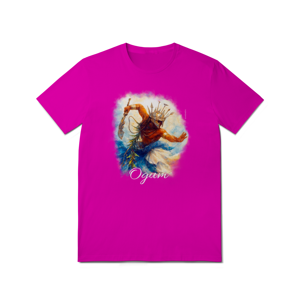 A estampa de Ogum foi cuidadosamente desenvolvida por um Ilustrador profissional, capturando a energia desse orixá. Com cores vibrantes e detalhes precisos, ela garante um visual moderno e impactante.