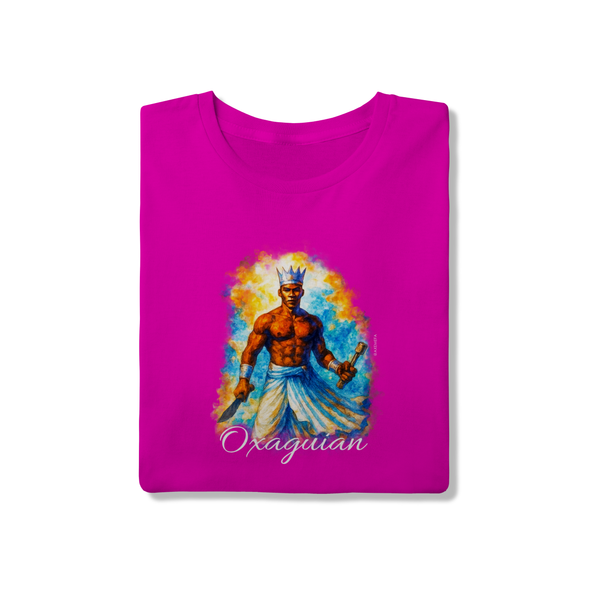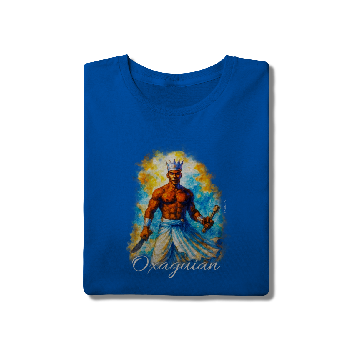 A estampa de Oxaguian foi cuidadosamente desenvolvida por um Ilustrador profissional a energia desse orixá. Com cores vibrantes e detalhes precisos, ela garante um visual moderno e impactante.