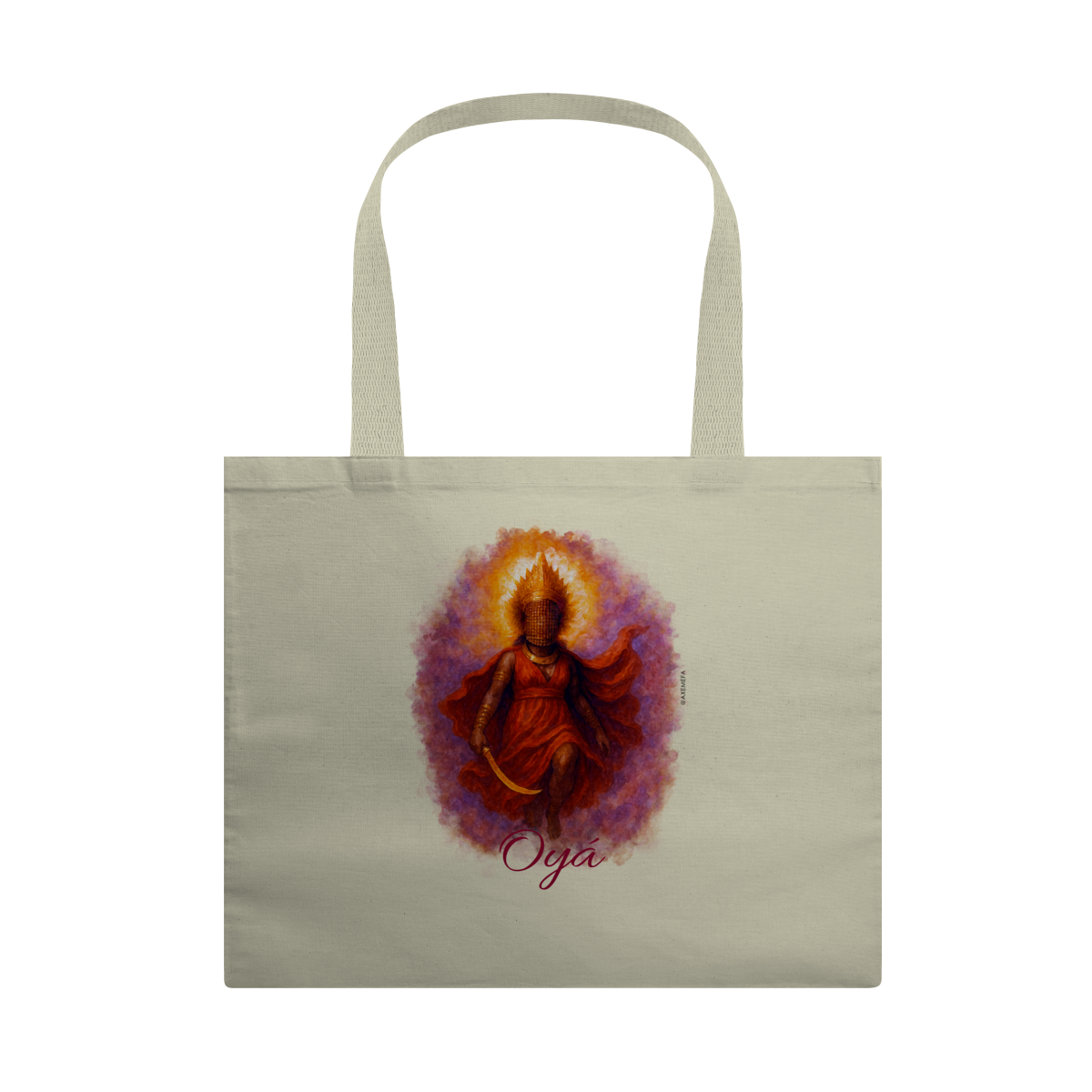 A estampa de Oyá, criada por um ilustrador profissional, captura a essência dessa orixá de forma vibrante e dinâmica. Com cores intensas e um design arrojado, a ecobag transmite toda a energia de transformação e força que Oyá representa. -